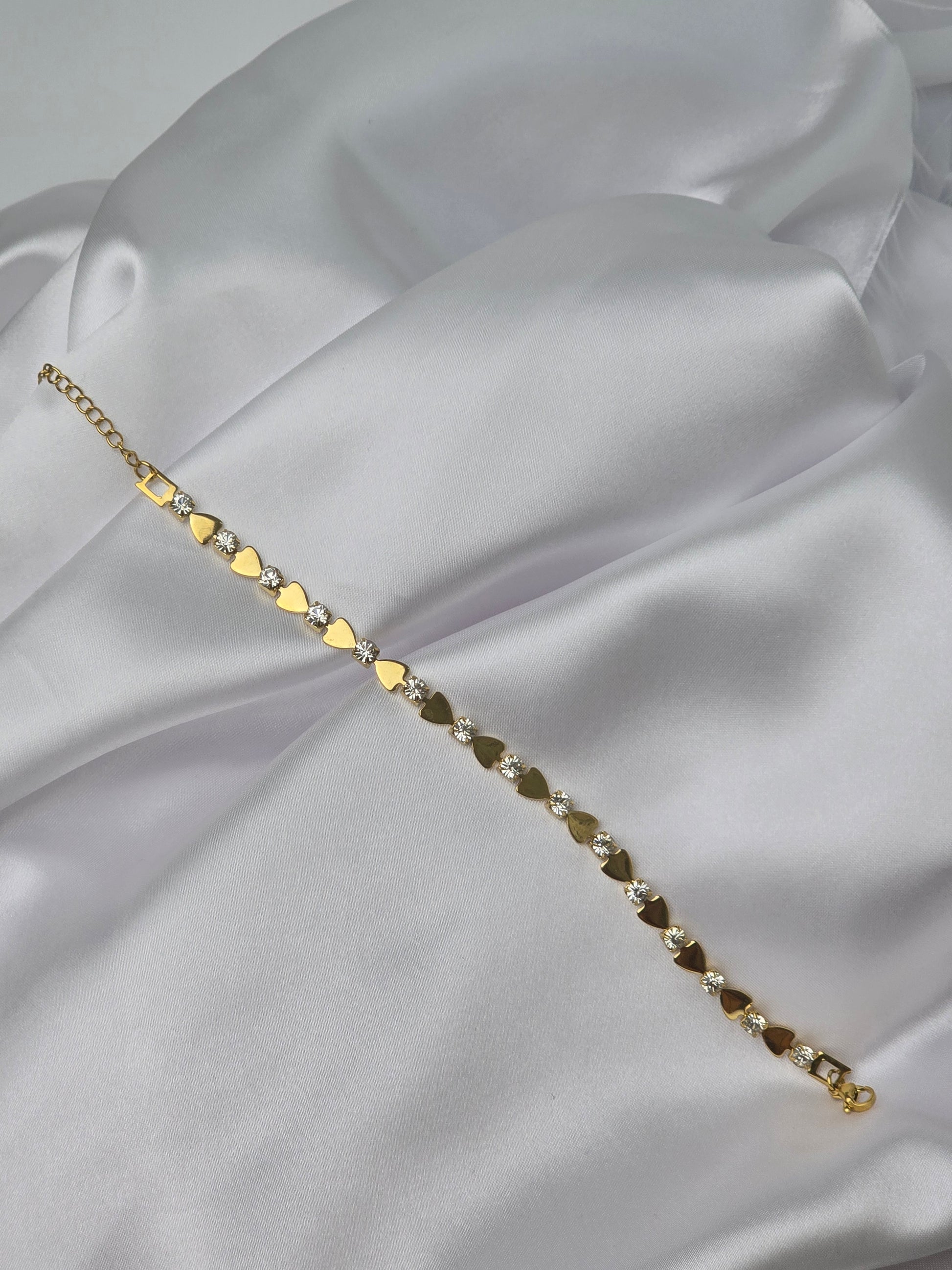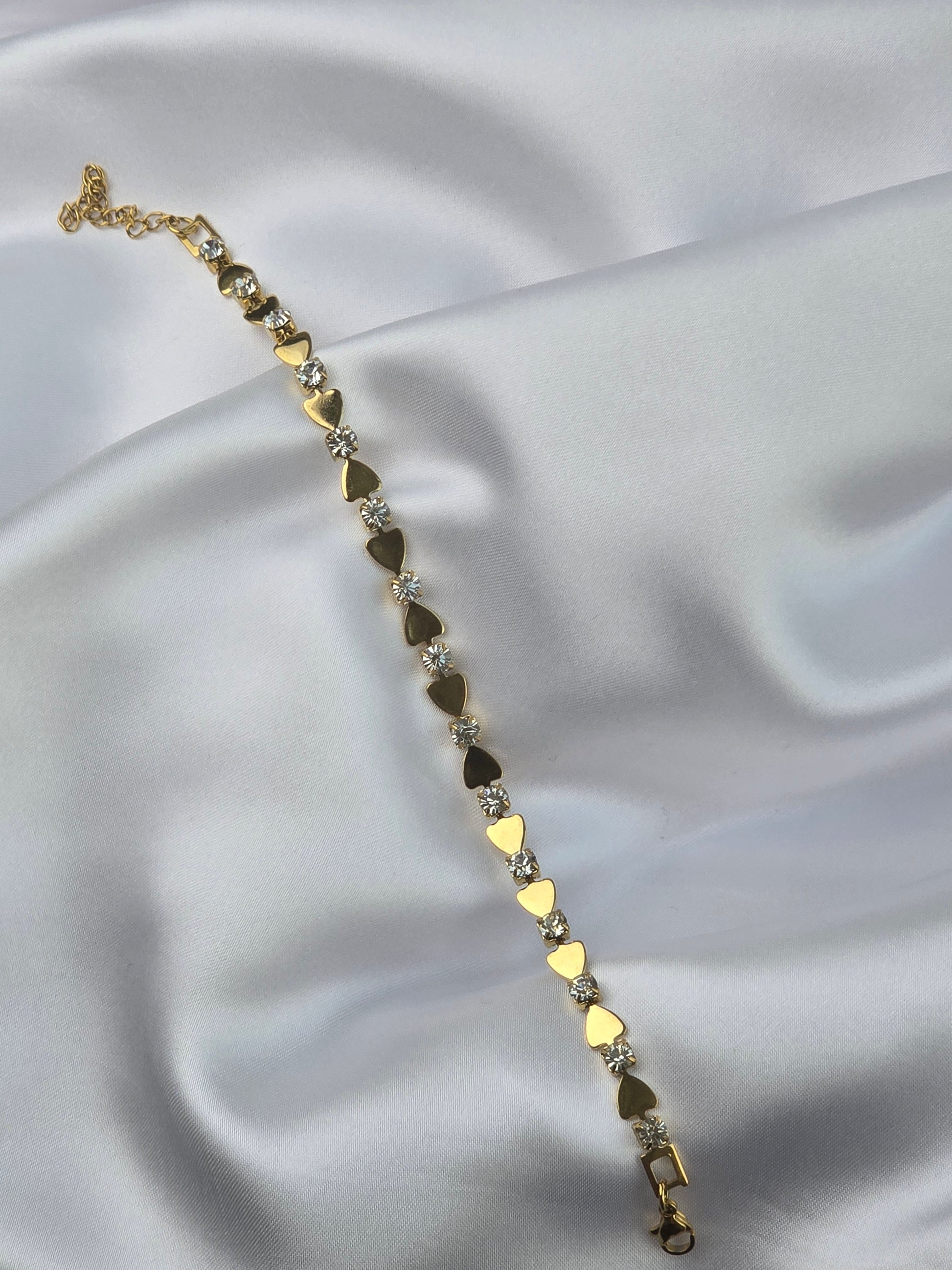 Gold heart links paired with sparkling American diamond— a pretty, easy-to-wear bracelet that adds shine to any look. Lightweight, durable, and finished in 18K gold over stainless steel.