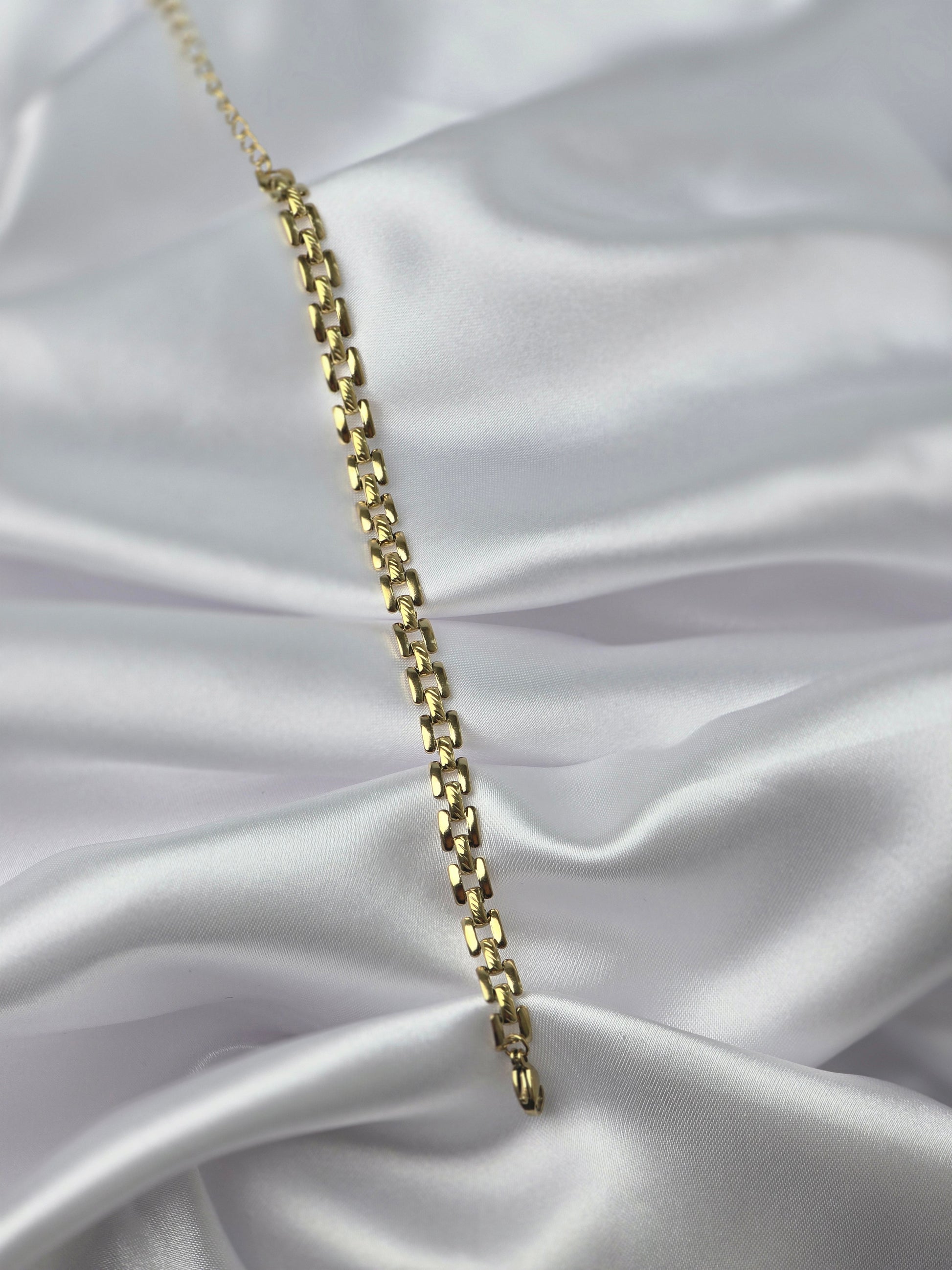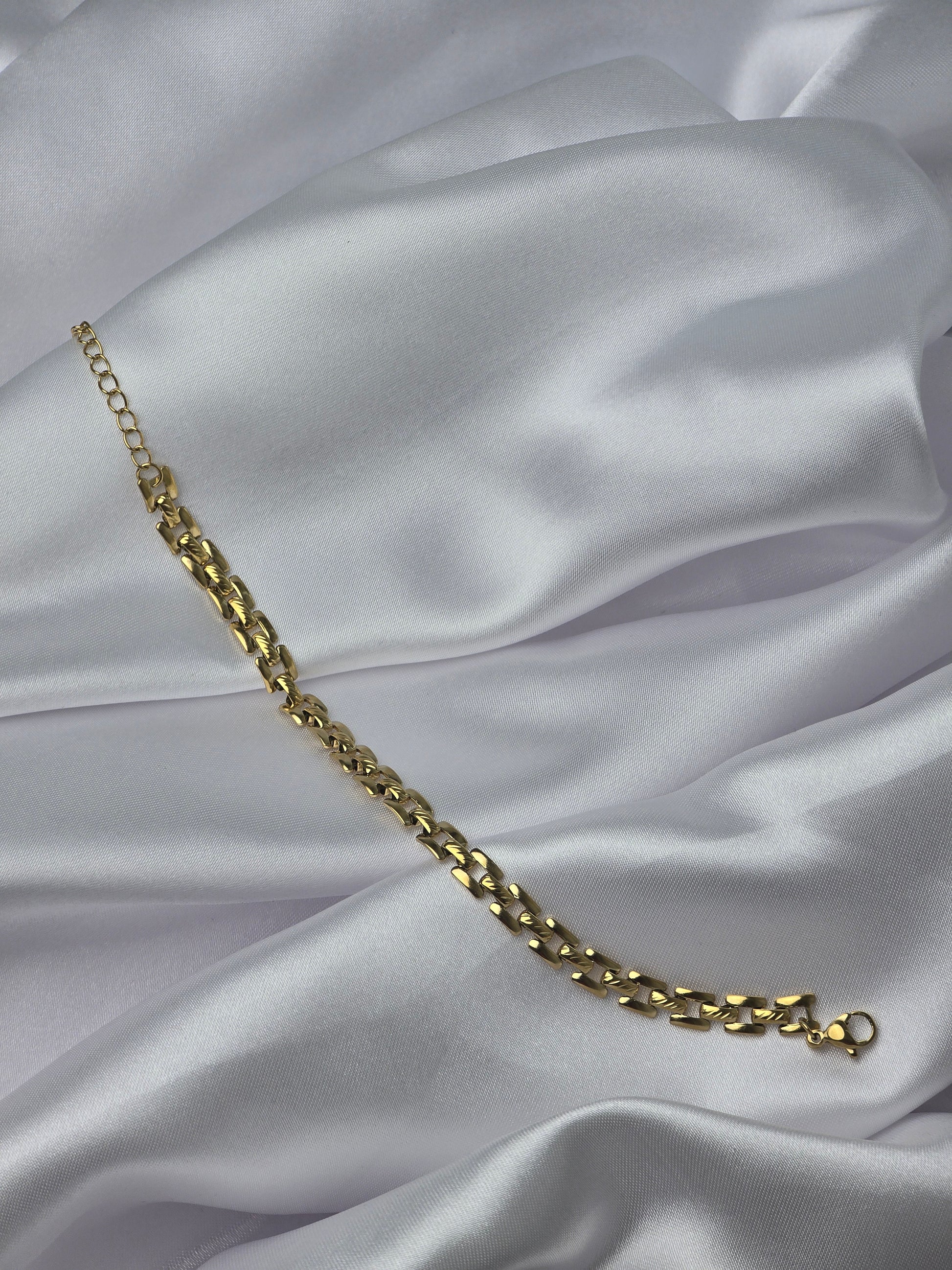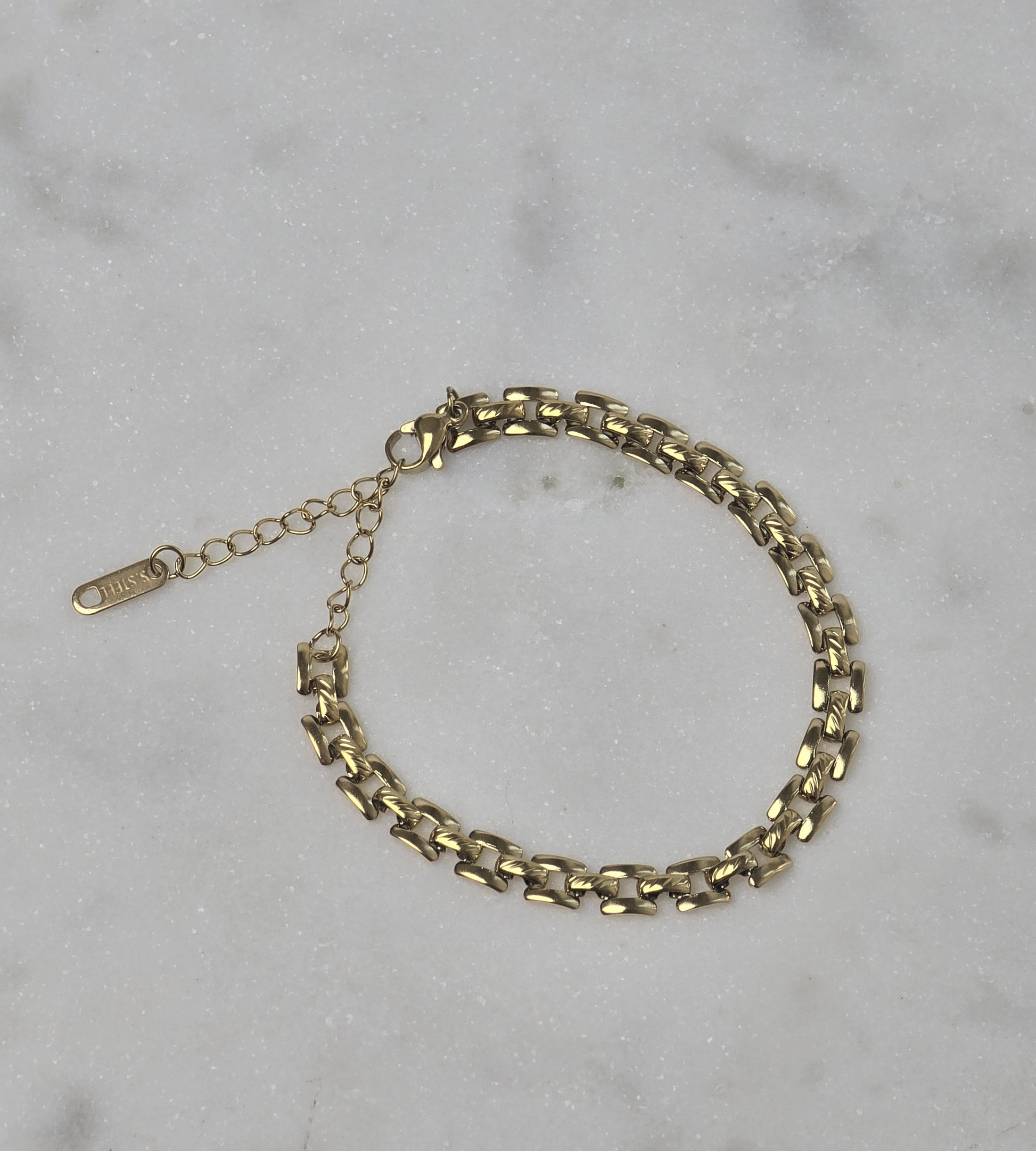 Sleek, polished links create a bold, modern silhouette. This everyday bracelet gives a clean, tailored finish — think watch-style but elevated.