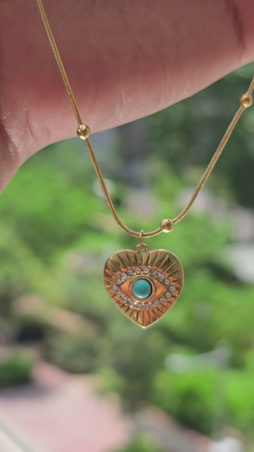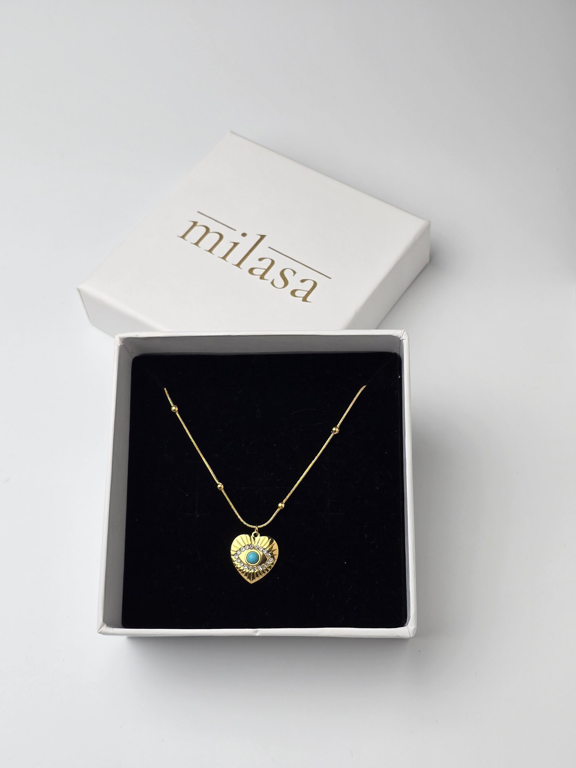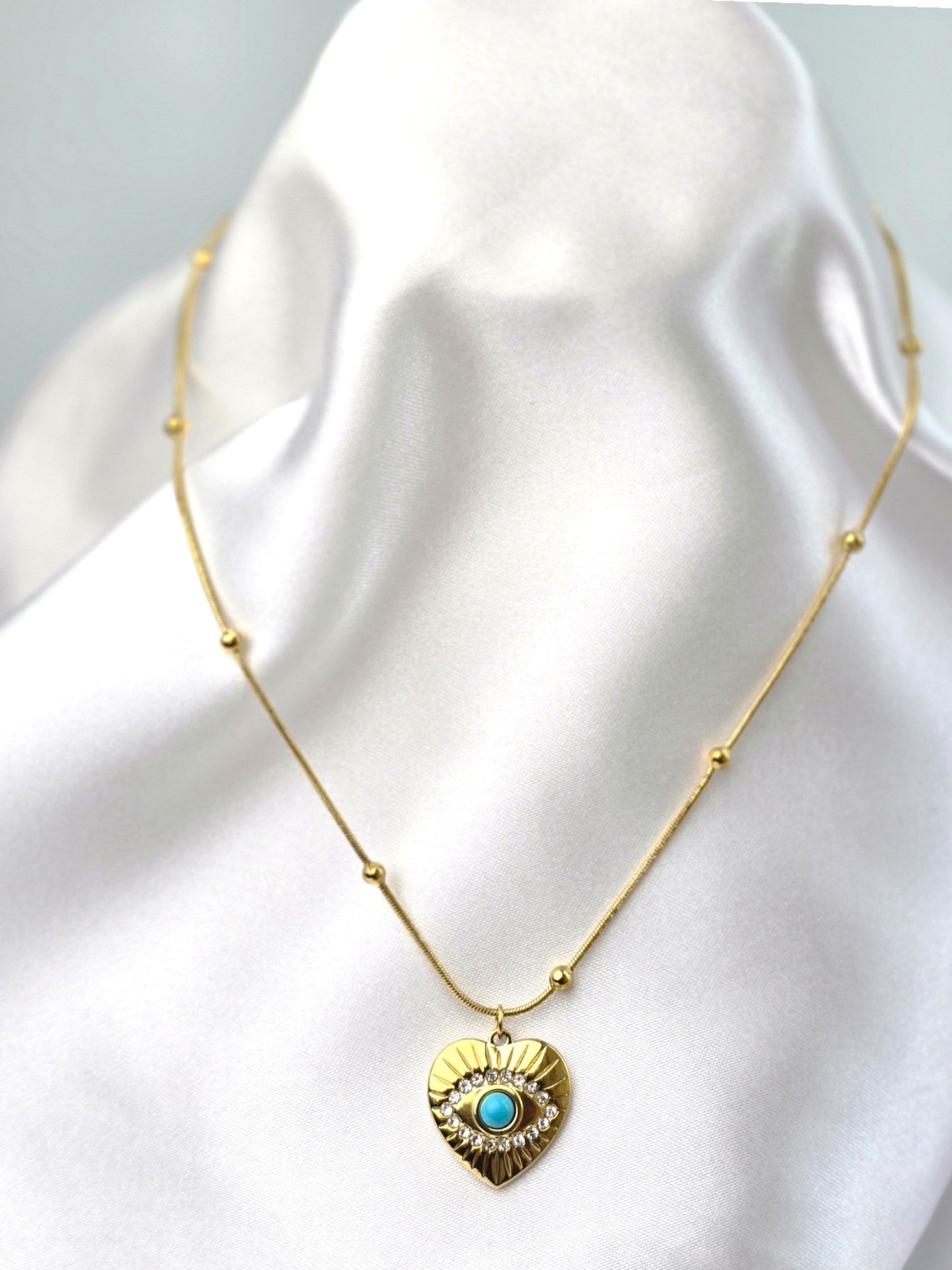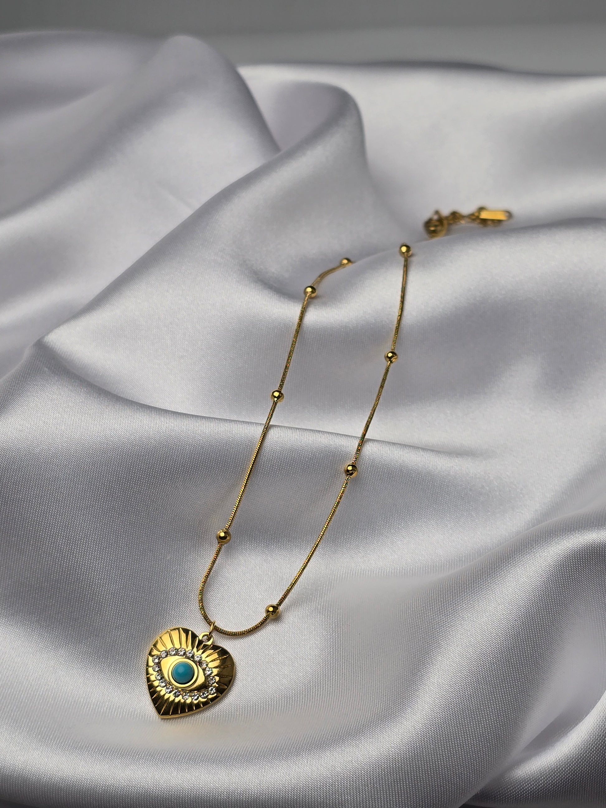 A guardian of beauty and protection—this heart-shaped pendant, infused with the mystique of the evil eye, is an emblem of strength and charm.