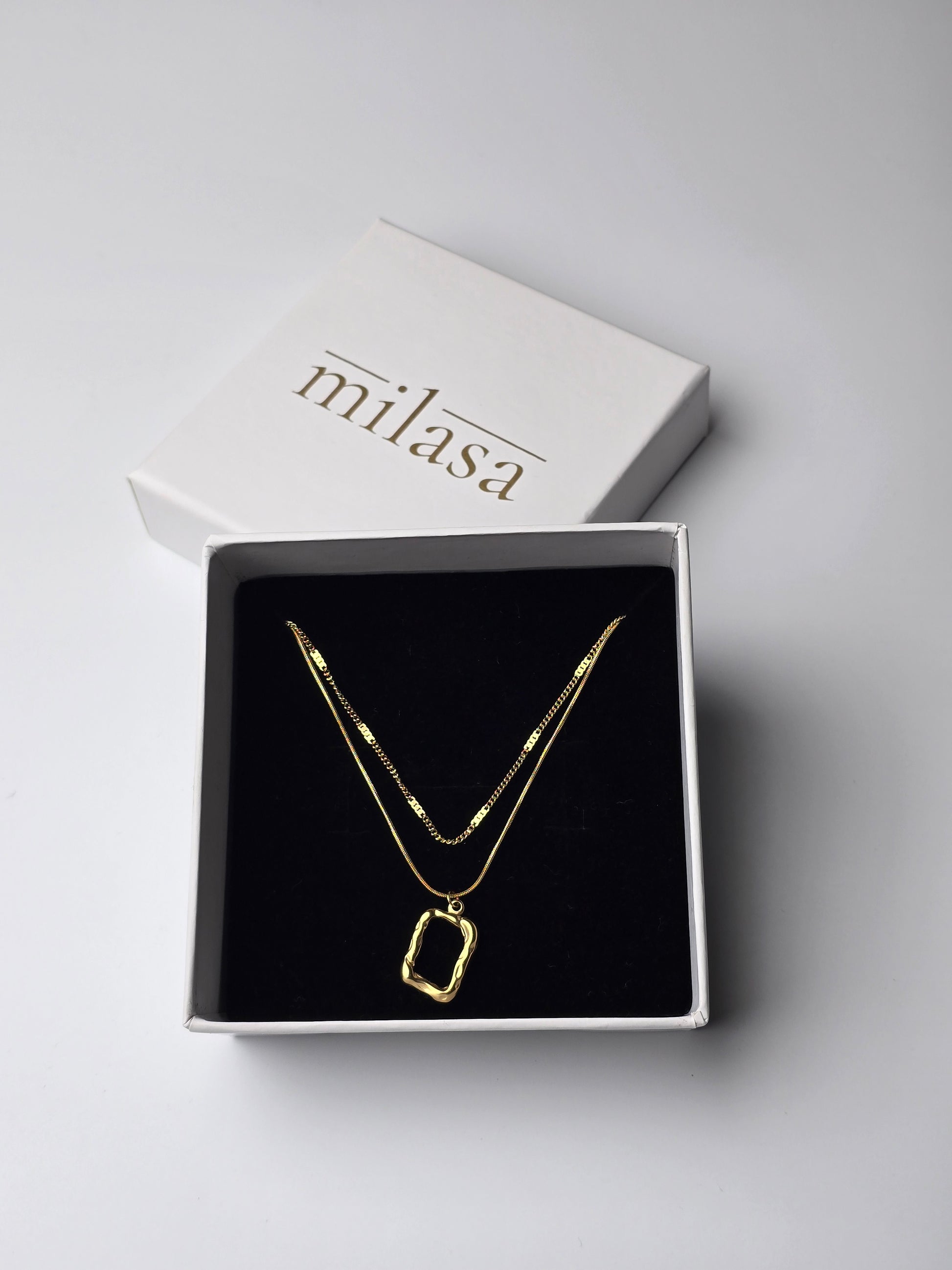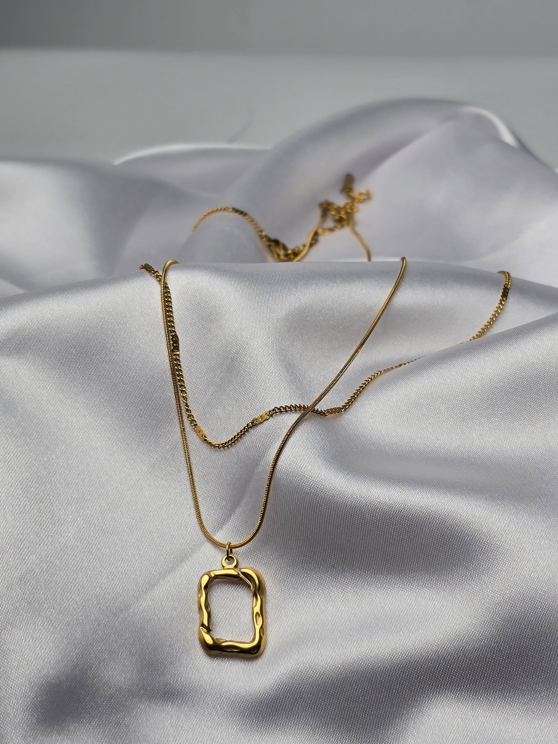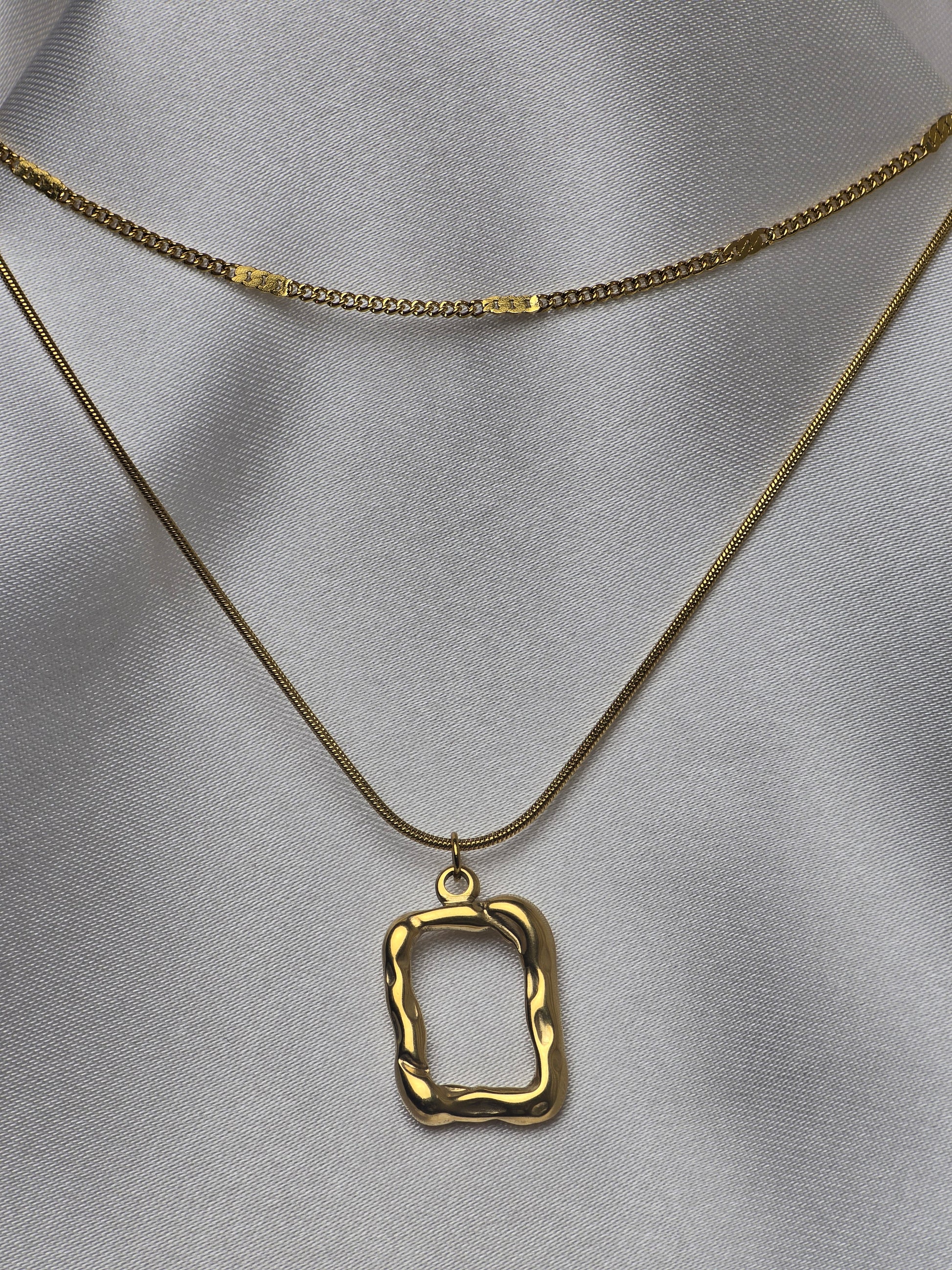 Minimal yet striking, this open rectangular pendant embodies effortless sophistication with its clean silhouette and refined details.
