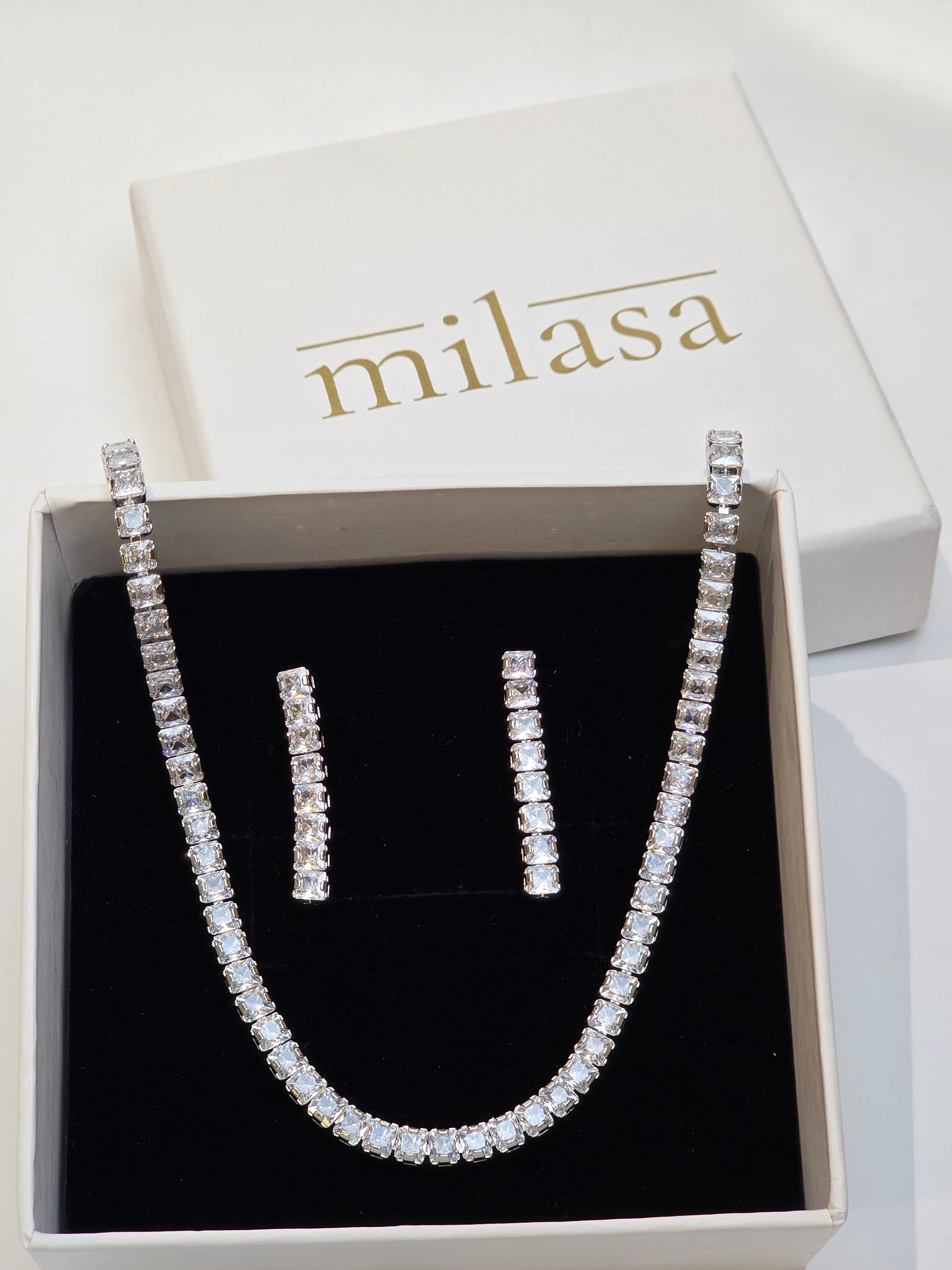 Milasa Styling Tip: Pair this set with a black dress or off-shoulder gown for a chic evening vibe, or wear just the necklace with a crisp shirt or blazer to elevate a casual outfit. Keep other accessories minimal to let the sparkle shine.