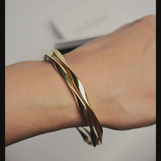 Minimal yet striking, the Aurora Wave Bangles feature a fluid wavy silhouette in high-quality stainless steel with a rich gold finish. Their lightweight design makes them effortless for all-day wear while the sculptural texture adds a touch of sophistication to any look.