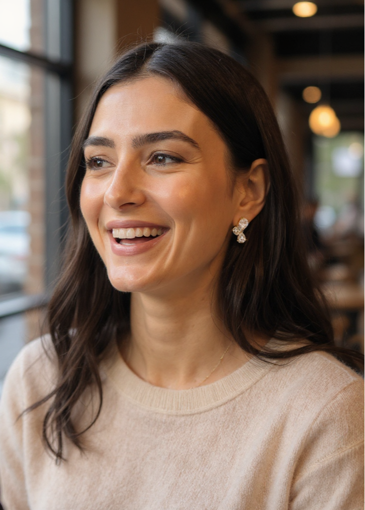 Milasa Styling Tip: Elevate your evening look with an off-the-shoulder gown and softly curled hair to enhance its cascading sparkle.