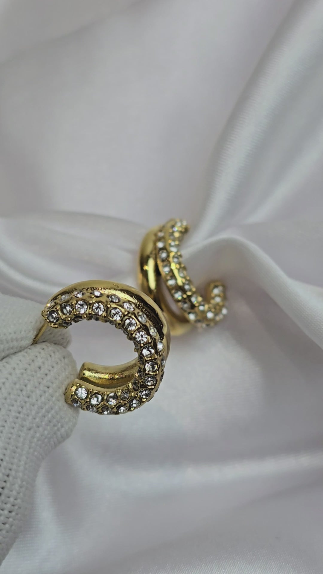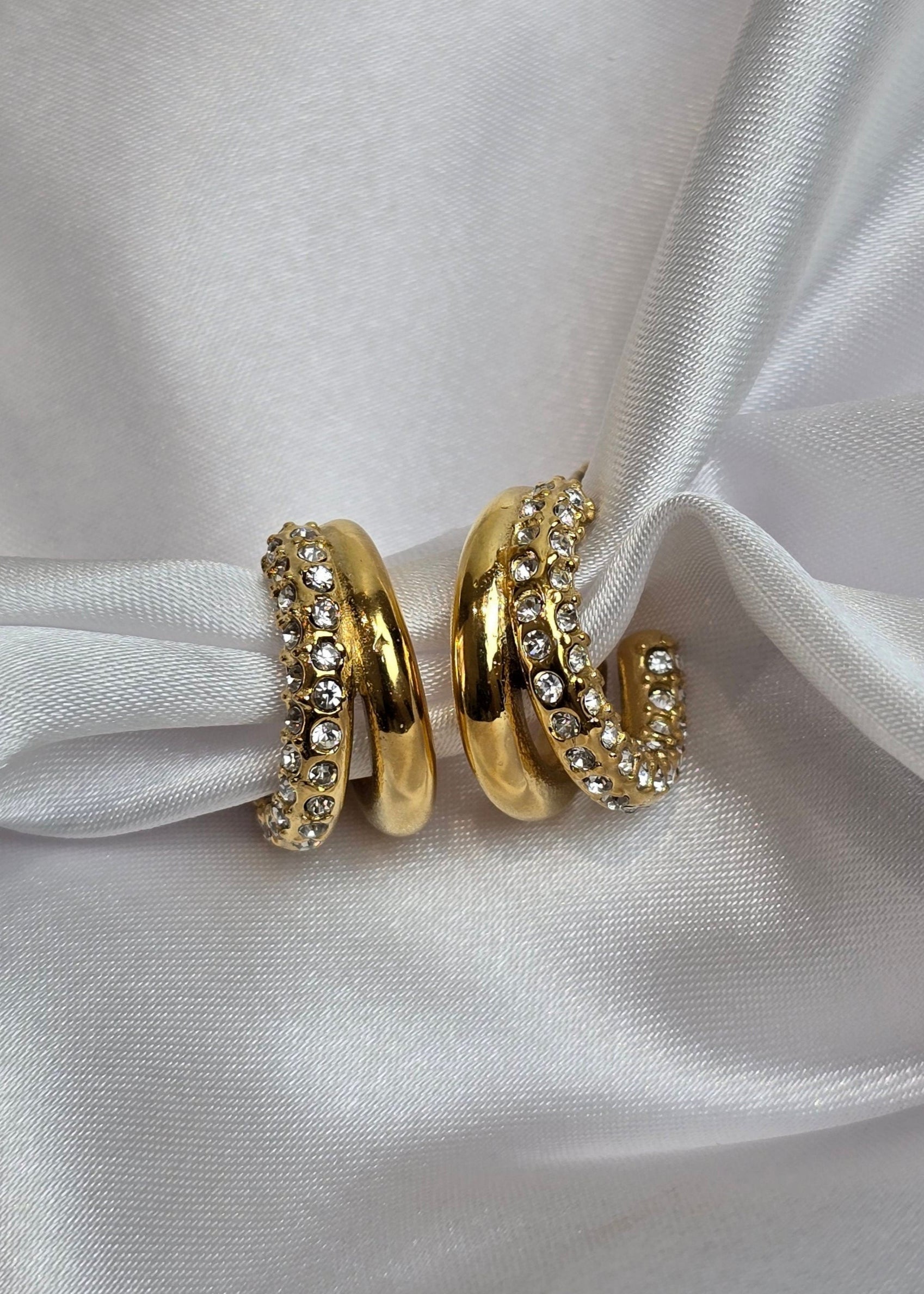 A statement of refined brilliance. These wide hoops contrast a sleek, polished band with a shimmering row of crystals, delivering effortless sophistication. Designed in high-quality, water-resistant stainless steel to maintain their radiance over time.