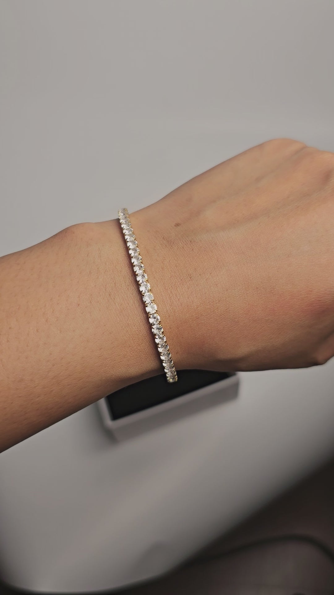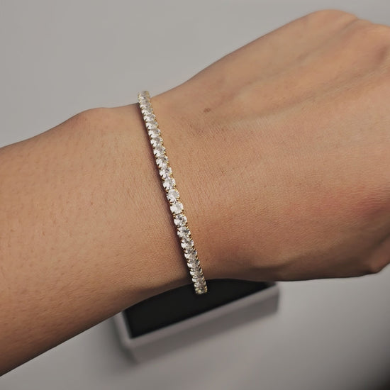 A modern take on the classic tennis design, this bracelet is crafted from high-quality stainless steel and features an elasticated band for a comfortable fit. Set with brilliant crystals all around, it’s anti-tarnish, skin-friendly, and easy to wear every day.