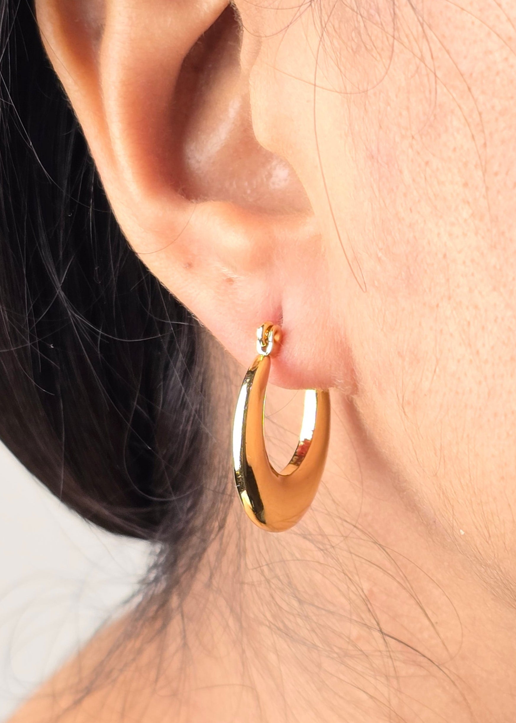 The epitome of understated luxury. These perfectly curved hoops exude refinement with their fluid shape and high-polish finish. Crafted from anti-tarnish stainless steel, they are as enduring as they are elegant.