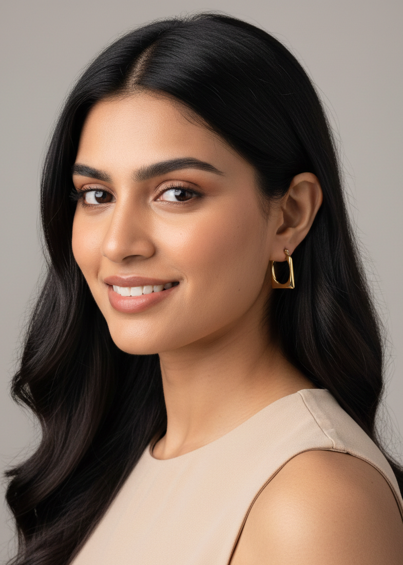 Sleek, structured, and effortlessly modern. These sculpted rectangular hoops make a striking statement with their clean lines and polished finish.
