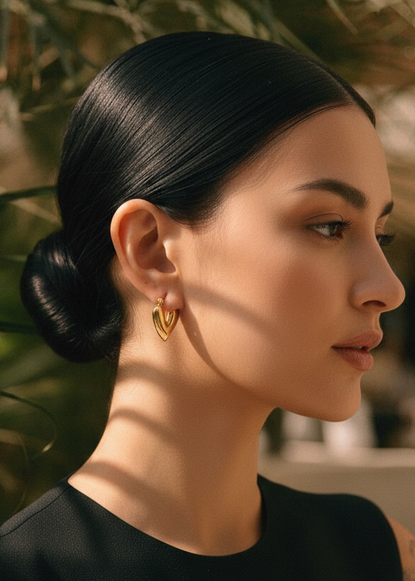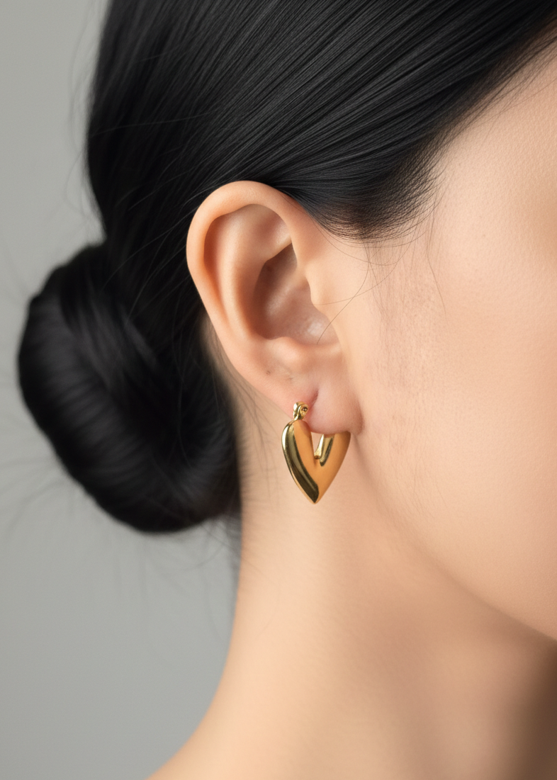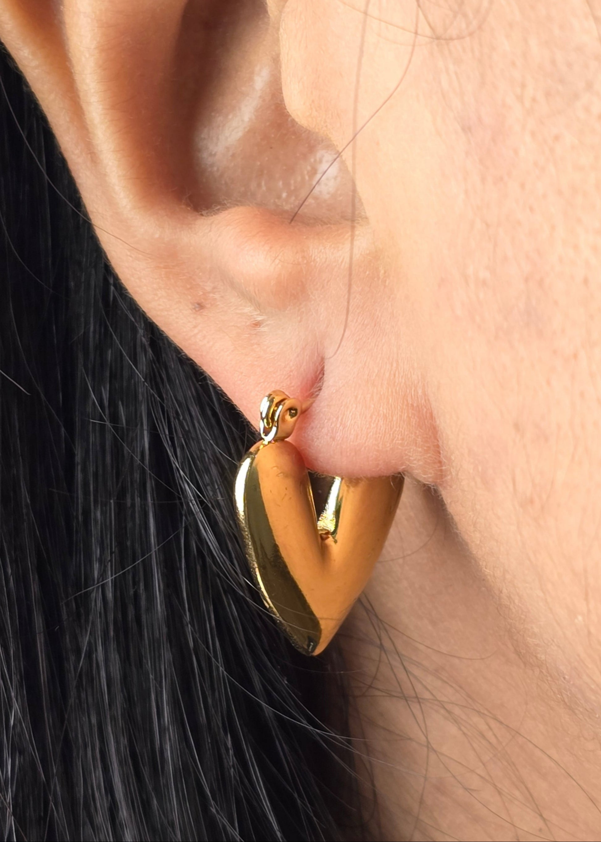 A modern symbol of love and elegance. These heart-shaped hoops blend softness with an edge, making them a unique yet versatile statement piece.