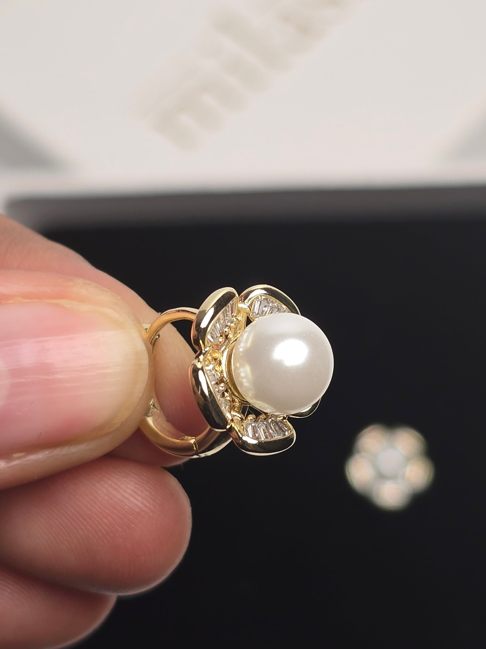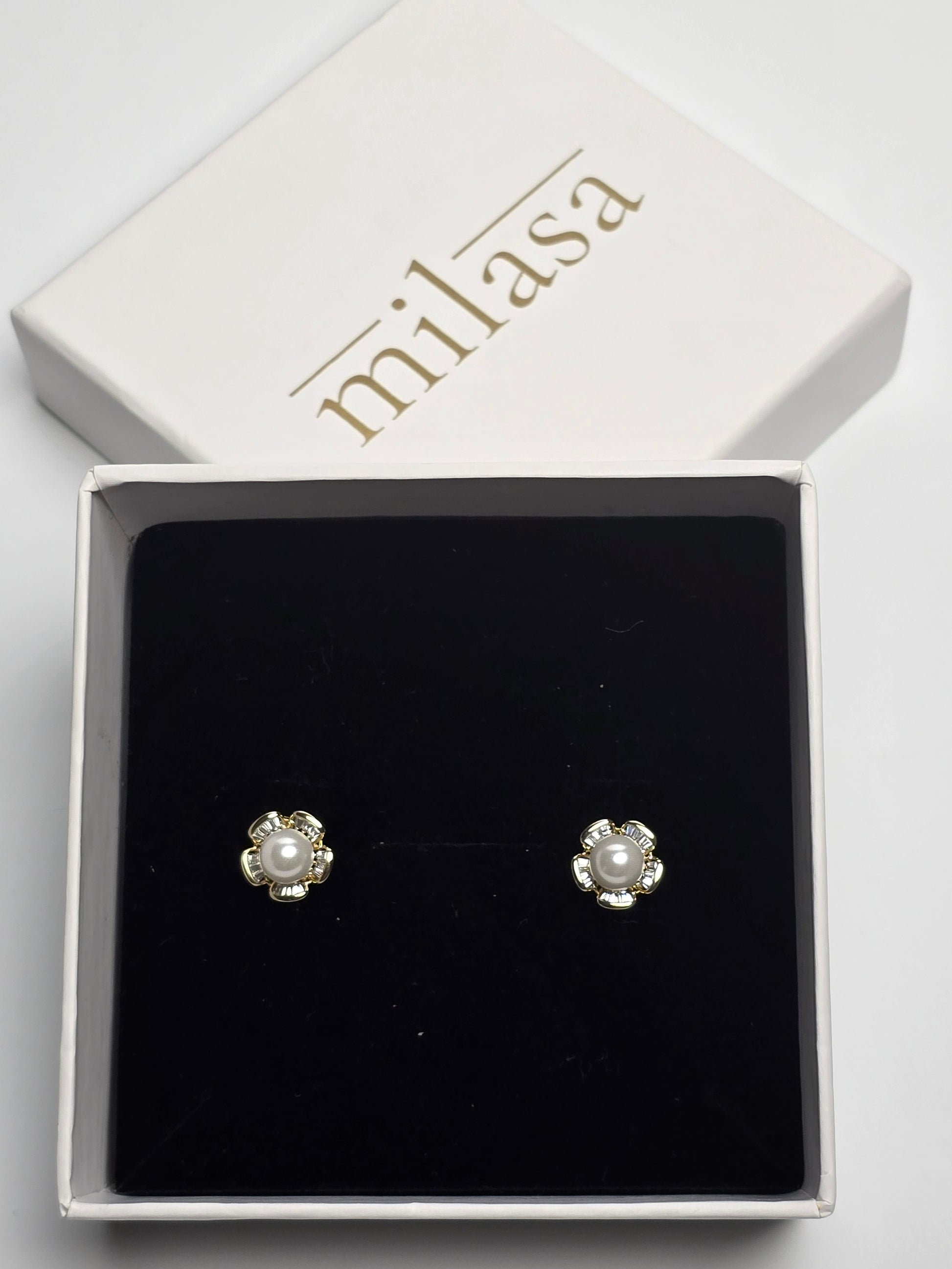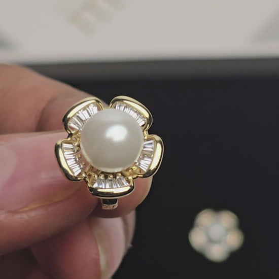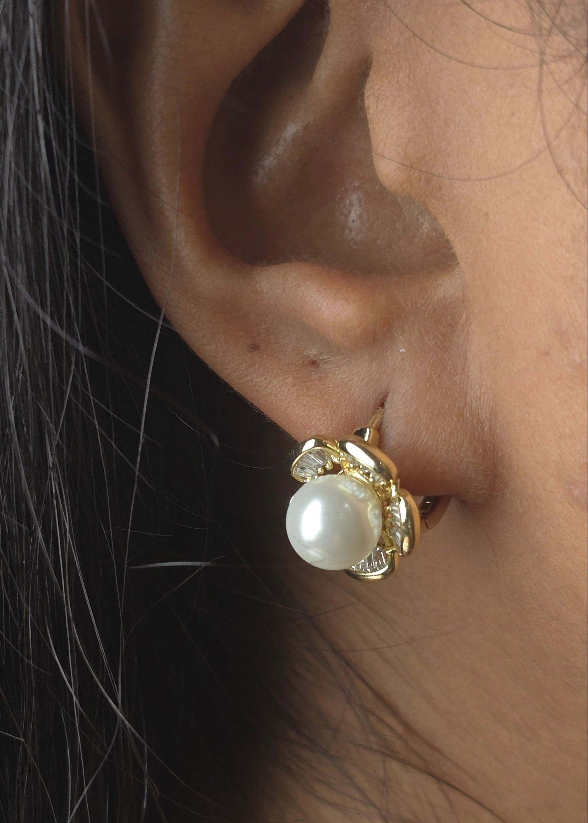 A luminous pearl sits at the center, embraced by crystal-detailed petals in a graceful huggie silhouette. Feminine, timeless, and crafted for all-day comfort — hypoallergenic and tarnish-free.