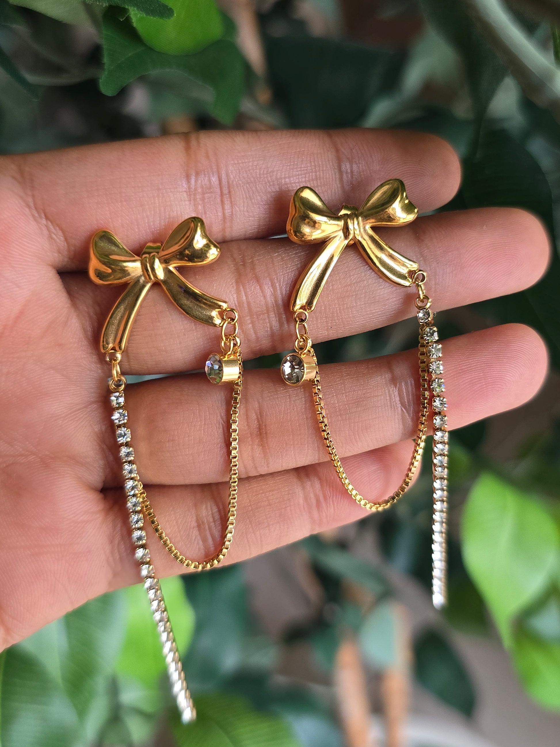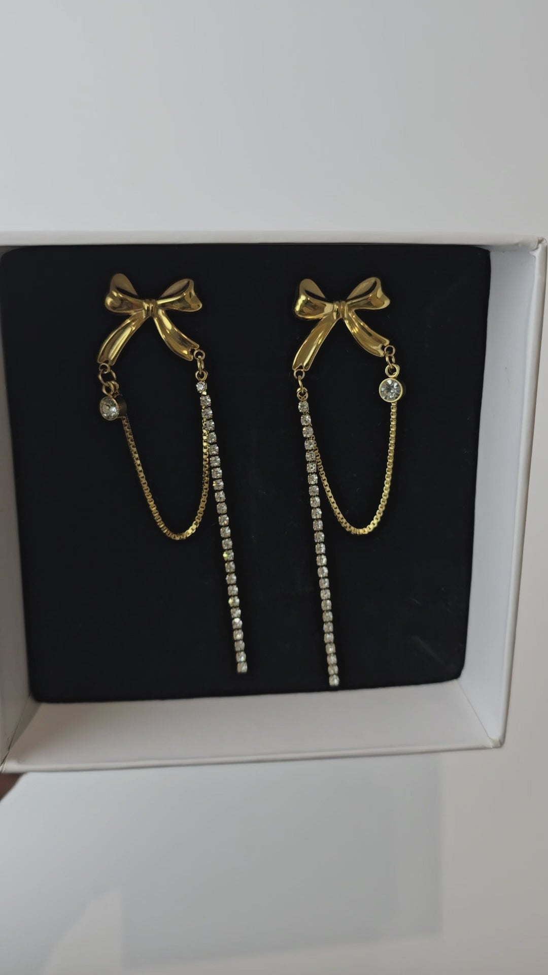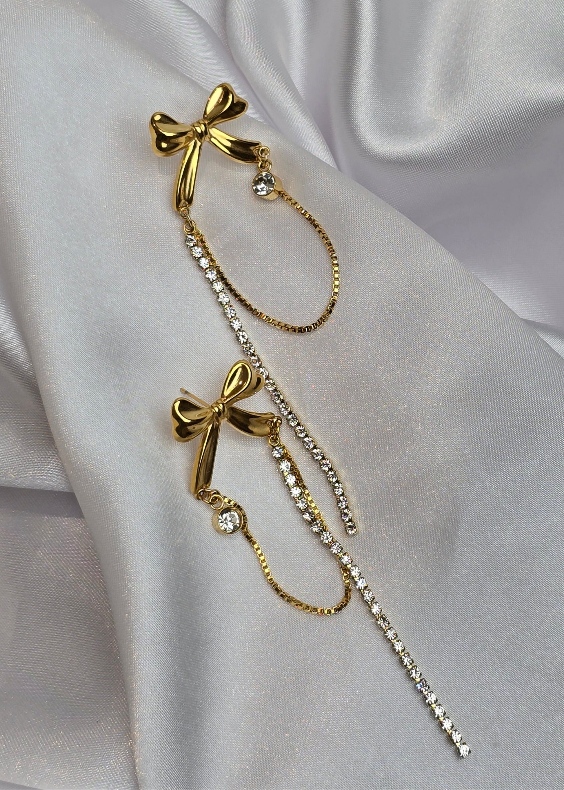 A poetic fusion of grace and sparkle. A delicate crystal bow sits atop shimmering strands, finished with a single solitaire accent for a touch of timeless radiance.