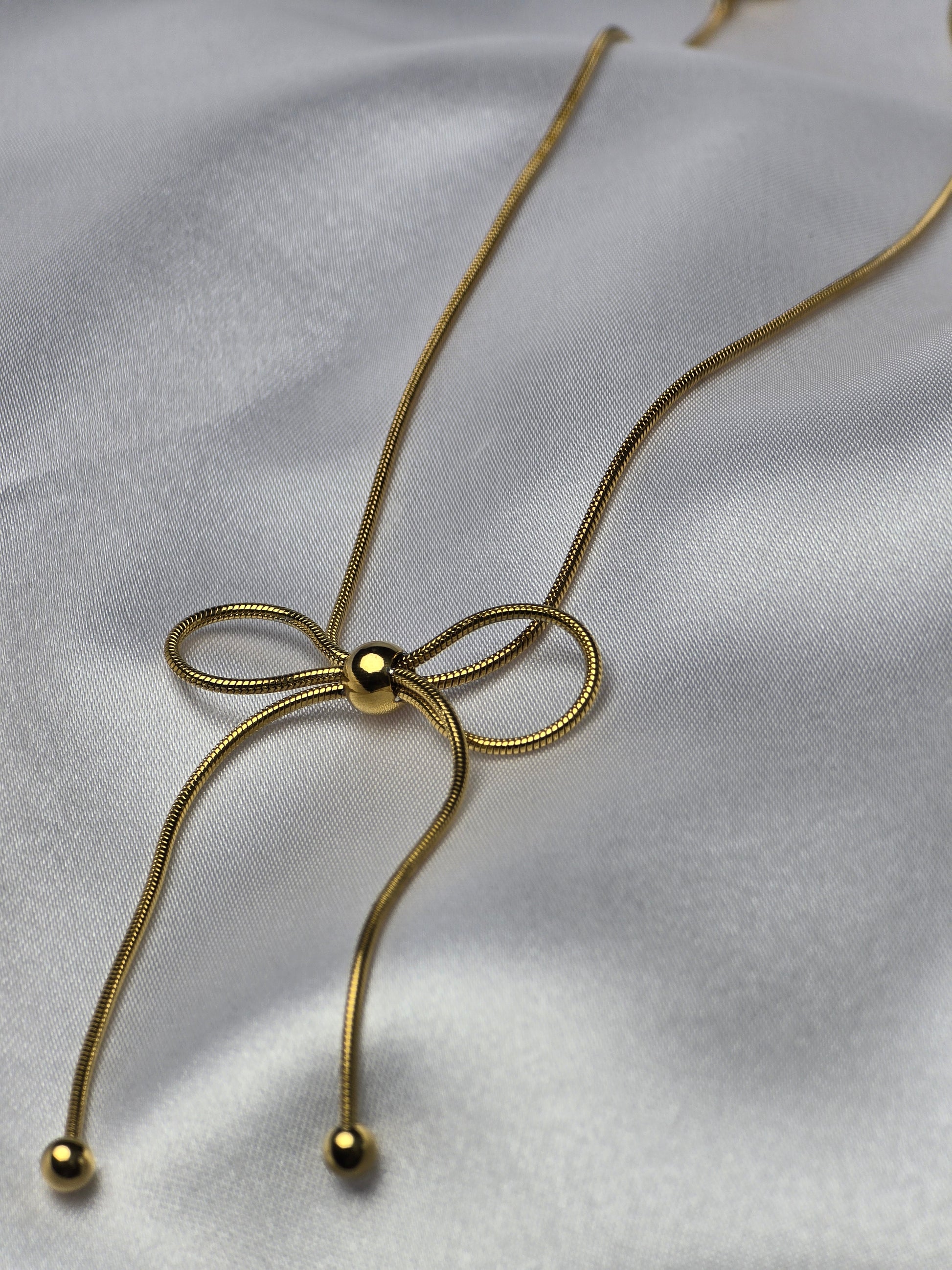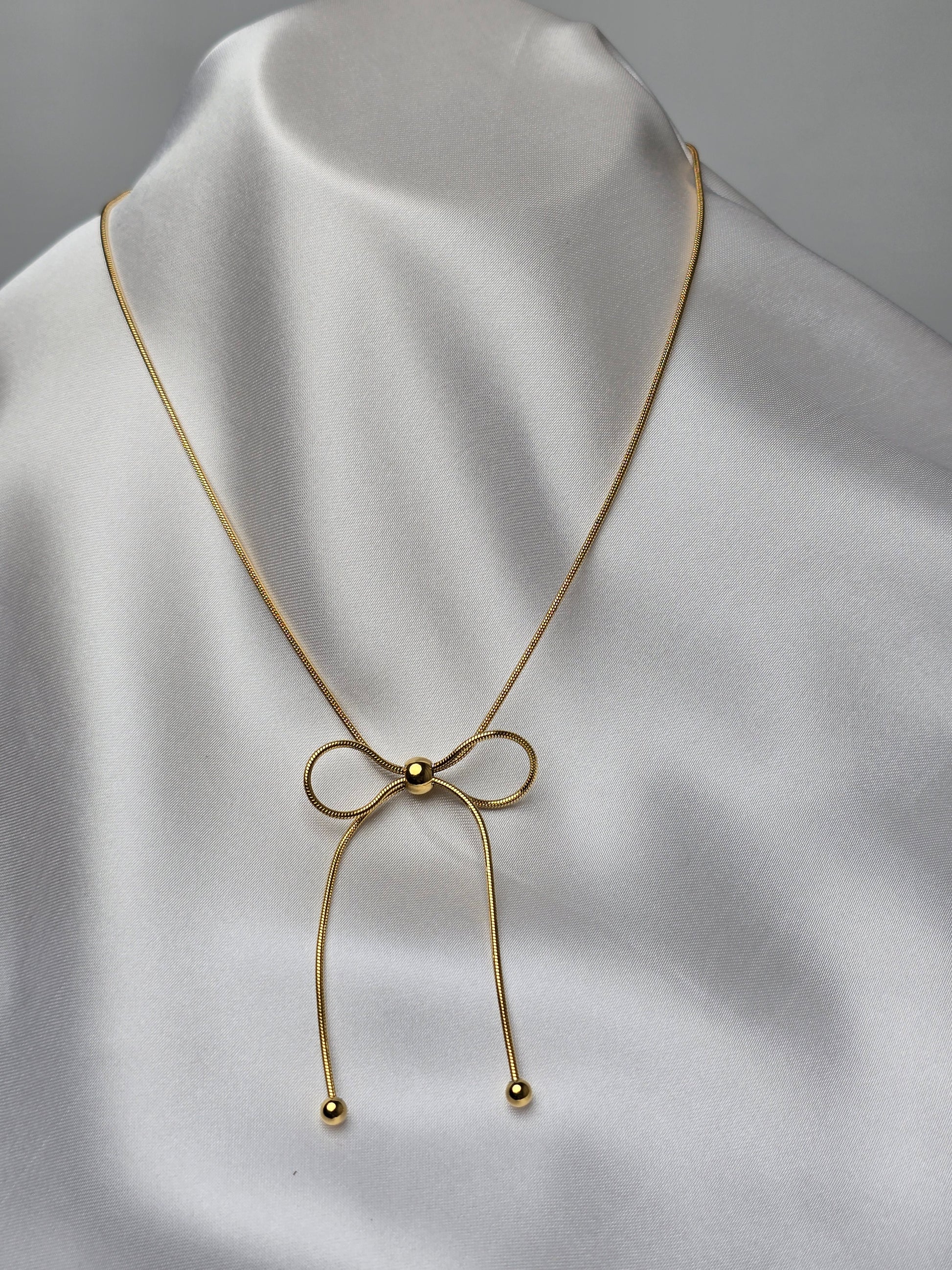 A delicate necklace and earring set featuring subtle bow details, perfect for everyday elegance.